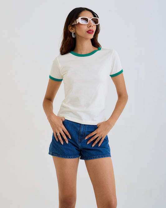 Vintage Women's T-Shirt – Retro Ringer Style – Off-White/Green