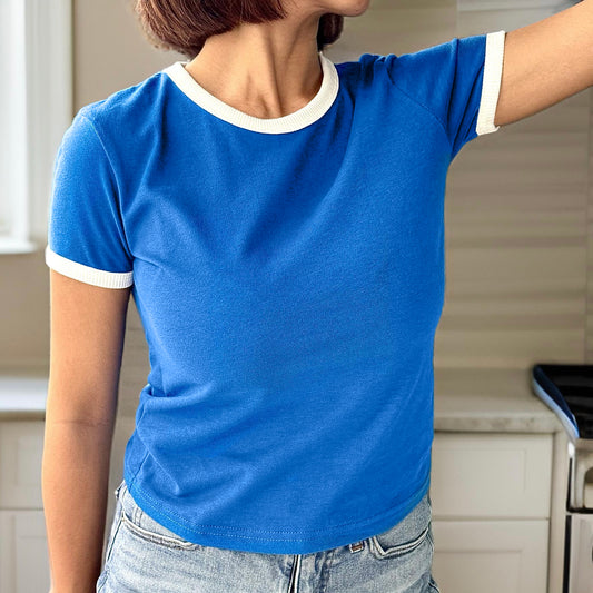 Vintage Women's T-Shirt – Retro Ringer Style – Blue/White