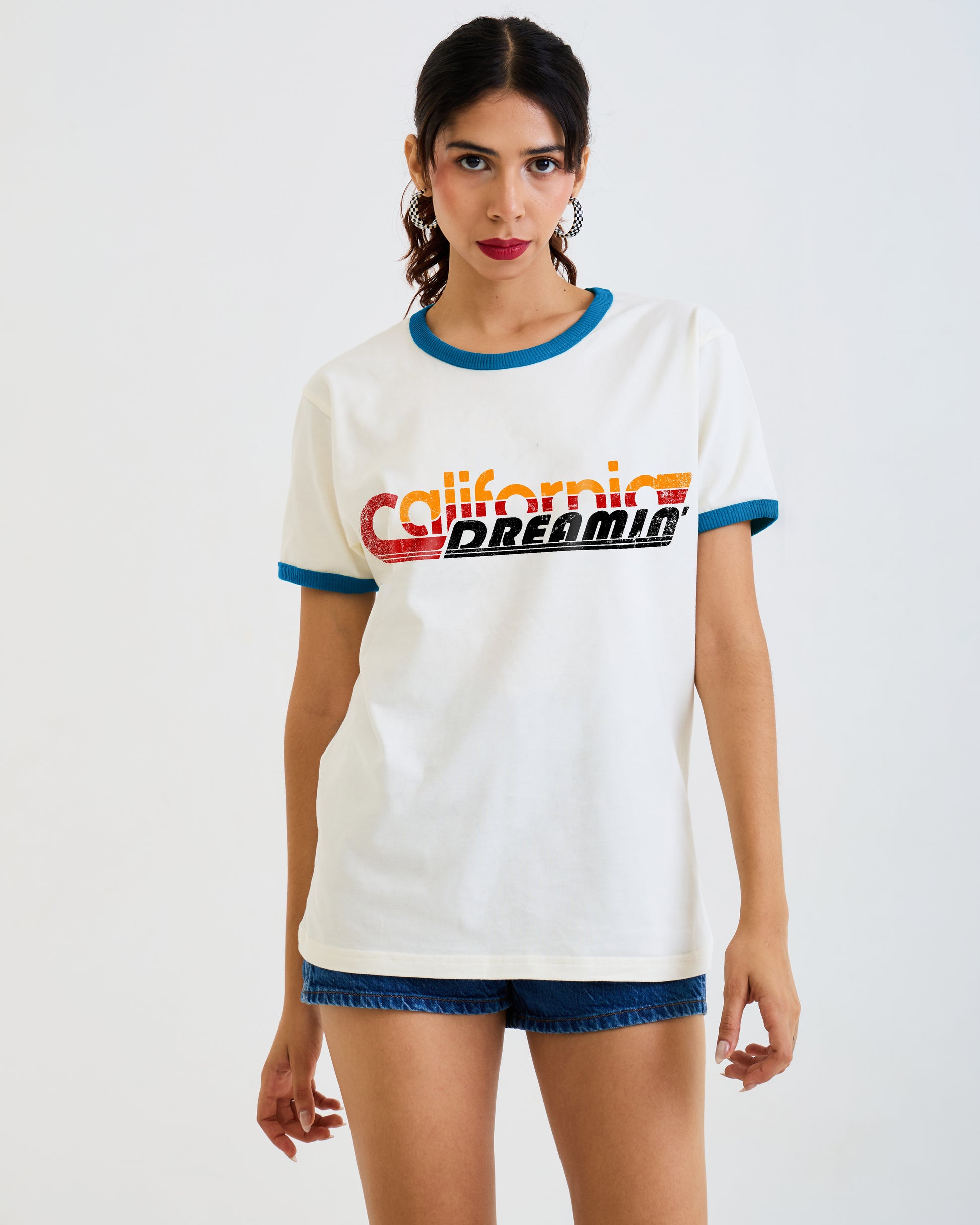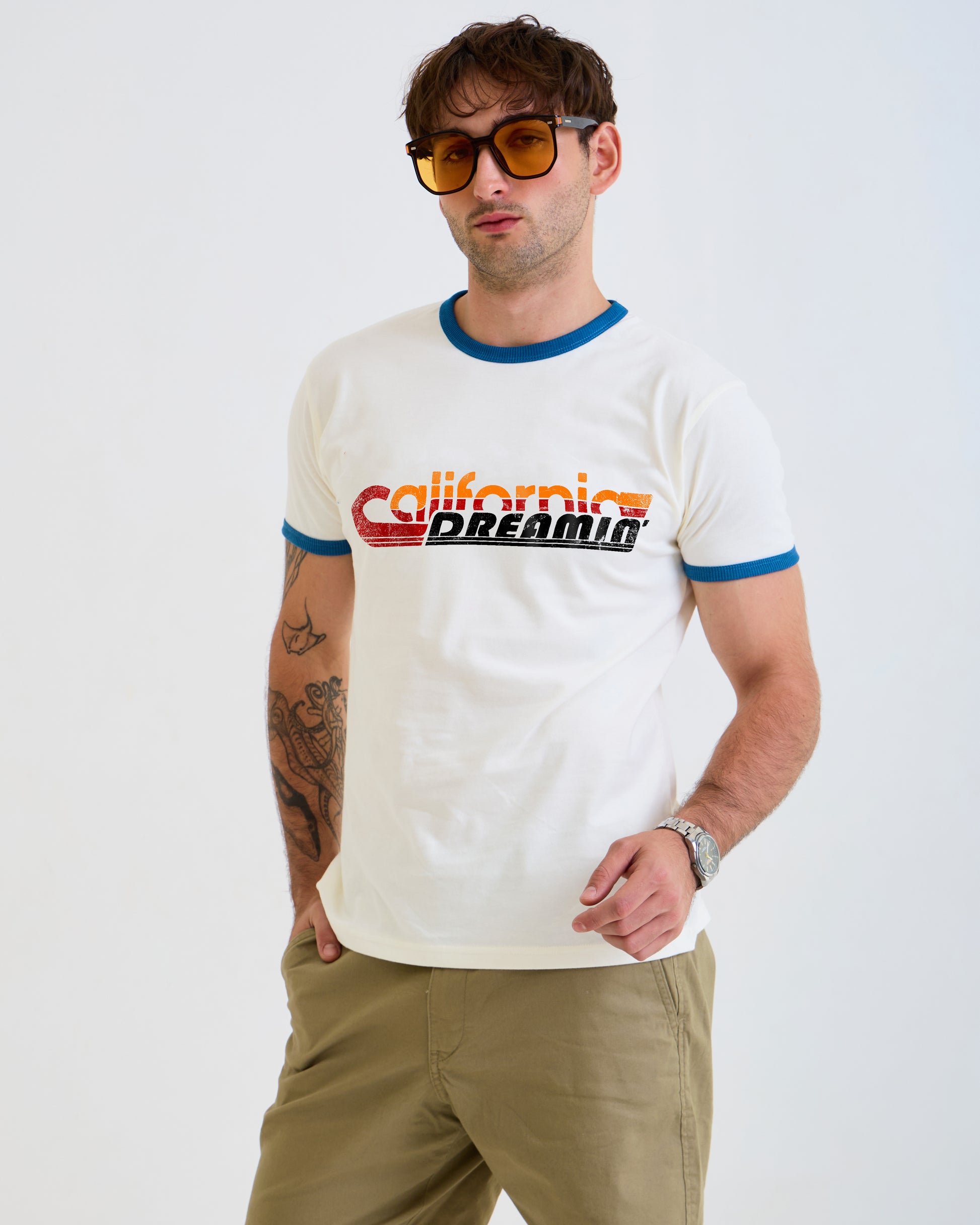 Vintage Unisex T-Shirt – California Dreamin Graphic – Retro Ringer Style – Off-White