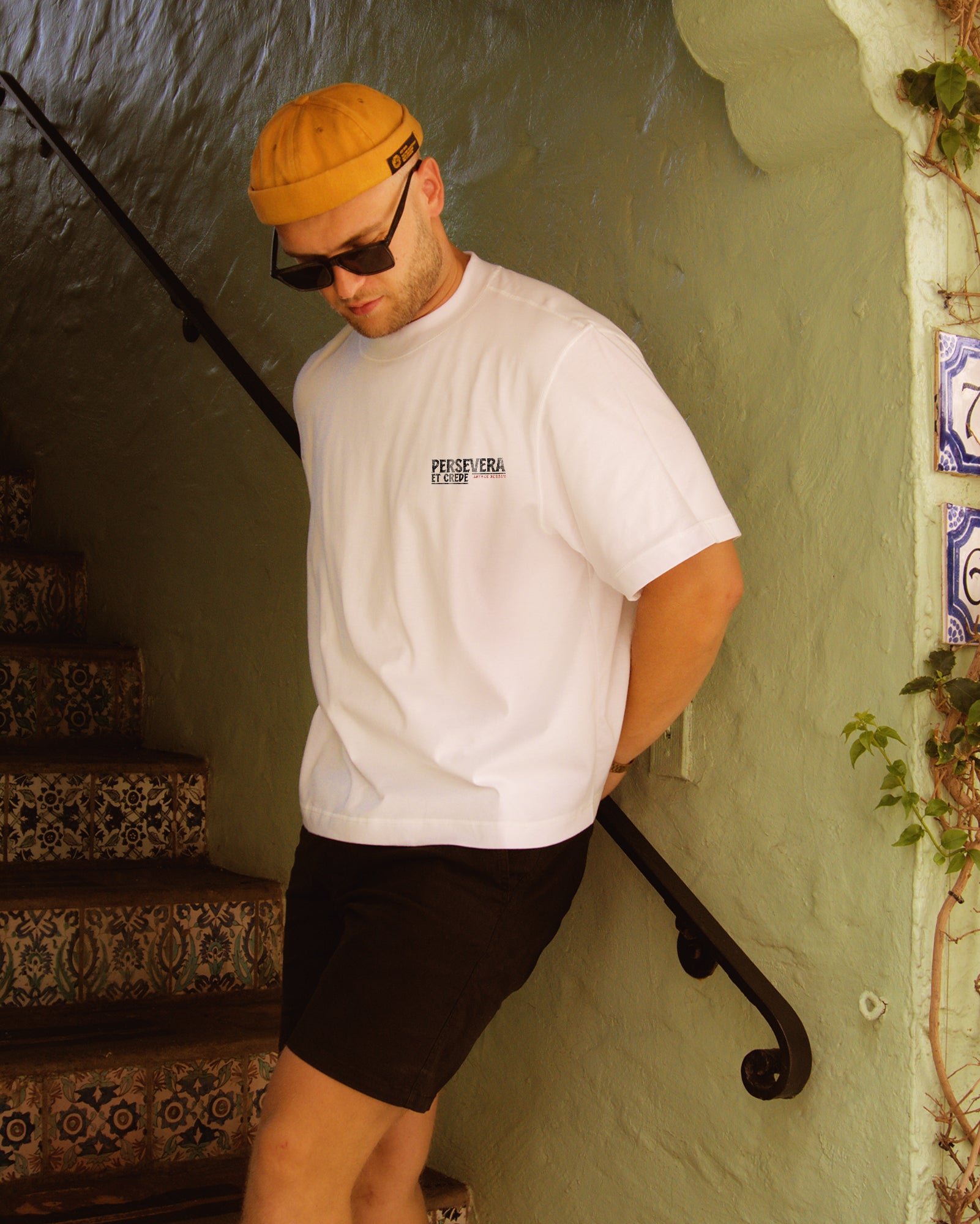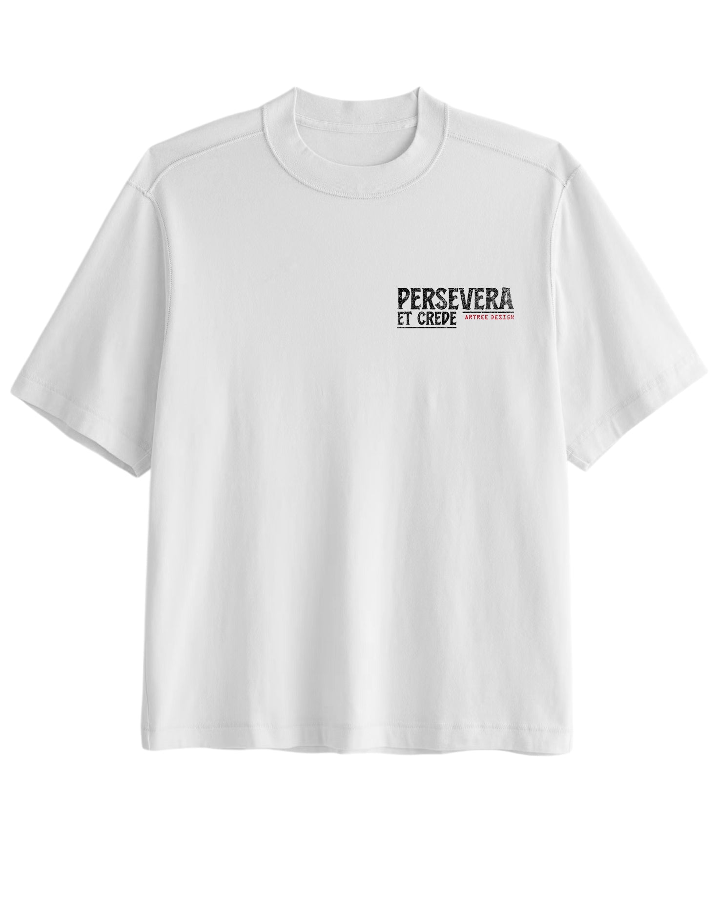 Vintage Oversized Cropped T-Shirt – Persevere And Believe White Tee – Boxy Fit