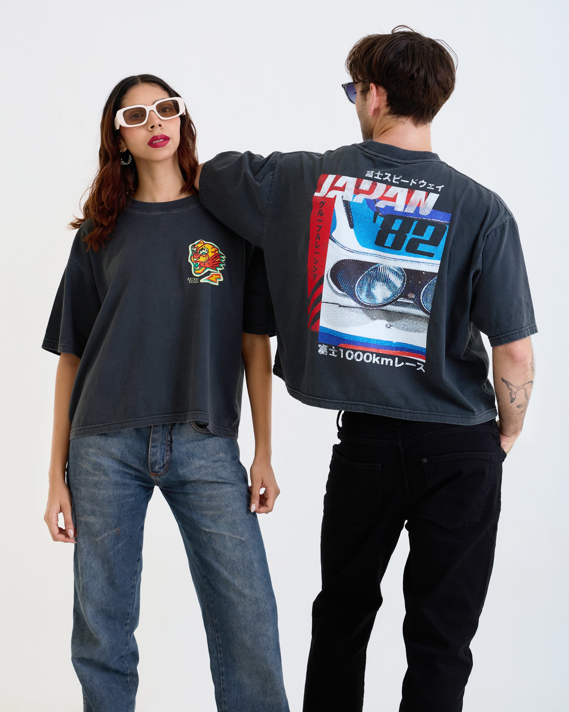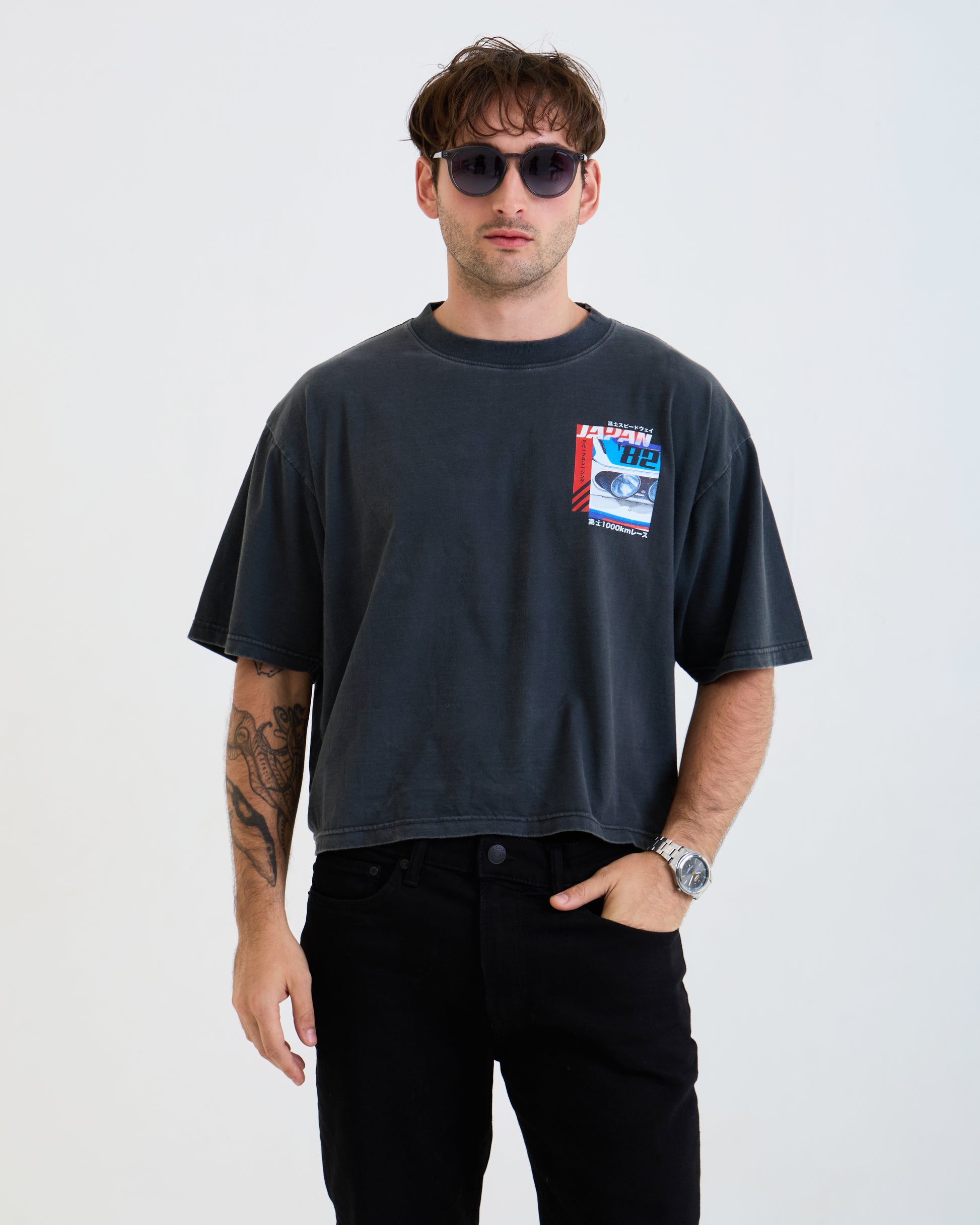 Vintage Oversized Cropped Unisex T-Shirt – Japan Racing Graphic – Black